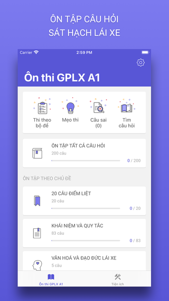 Ôn Thi Bằng Lái Xe Máy A1 A2 เป็นแอปพลิเคชันทางการศึกษาที่ออกแบบมาเพื่อช่วยให้ผู้ใช้เรียนรู้และเตรียมตัวสำหรับการสอบใบขับขี่รถจักรยานยนต์ระดับ A1 และ A2 ด้วยแอปพลิเคชันนี้ผู้ใช้สามารถเรียนรู้ความรู้ทฤษฎีที่จำเป็นและสอบผ่านการสอบเขียนได้ในเพียง 3 วัน แอปพลิเคชันนี้มีข้อสอบทั้งหมด 200 ข้อสำหรับใบขับขี่รถจักรยานยนต์ระดับ A1 และ 450 ข้อสำหรับใบขับขี่รถจักรยานยนต์ระดับ A2 คำถามถูกจัดหมวดหมู่เป็นส่วนสำคัญที่มีความชัดเจนรวมถึงแนวคิดและกฎเกณฑ์ สัญลักษณ์จราจรทักษะทางปฏิบัติและวัฒนธรรมการขับขี่